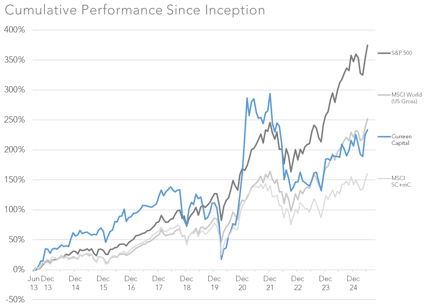 Curreen Capital Management LLC (“Curreen”) is an independent investment management firm located in Brooklyn, NY. The information provided herein may not be reproduced or distributed, in whole or in part, without prior written consent. The data provided is for informational and discussion purposes only. Curreen makes no warranty, express or implied, regarding the applicability of the information to any investor’s investment decision-making process. The information contained herein will be superseded by, and is qualified in its entirety by, reference to the private placement memorandum or comparable document of Curreen Capital Partners LP, which will contain additional information about the investment objectives, terms and conditions of an investment in said fund and also may contain tax information and risk disclosures that are important to any investment in the fund. You should refer to or request a copy of such documents prior to evaluation of the information on this site, as they contain detailed disclosures that should be taken into consideration. You should also consult a financial, tax, legal or other adviser with appropriate expertise when using this information to evaluate an investment decision. Material aspects of the information contained herein may change at any time. The historical performance data provided is neither indicative of nor a guarantee of future results. There is no assurance that similar returns will be achieved in the future. Actual, net of fees performance is presented for Curreen Capital Partners LP. An investor’s actual results may have differed substantially from the performance figures presented herein due to differences in fees and the timing of investor contributions and withdrawals, among other reasons. Performance figures include cash and cash equivalents, and reflect the reinvestment of dividends, interest and other earnings.